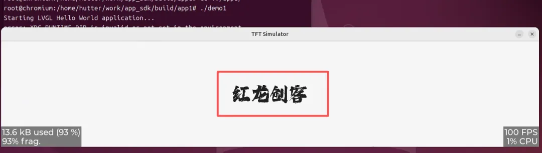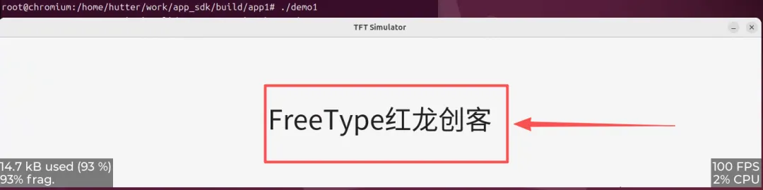 #ifndef _FONT_CONF_H_#define _FONT_CONF_H_#include "res_conf.h"#include "font_utils.h" // 字体管理// 字体类型枚举typedefenum { FONT_TYPE_CN = 0, // 思源黑体常规 FONT_TYPE_CN_LIGHT, // 思源黑体细体 FONT_TYPE_NUMBER, // 数字字体} FONT_TYPE;// 字体路径定义#define FONT_TYPE_CN_PATH FONT_PATH "SOURCEHANSANSCN_REGULAR.OTF"#define FONT_TYPE_CN_LIGHT_PATH FONT_PATH "SOURCEHANSANSCN_LIGHT.OTF"#define FONT_TYPE_NUMBER_PATH FONT_PATH "Library-3-am-3.otf"// 字体初始化宏(一键初始化所有字体)#define font_init() \ do { \ add_font(FONT_TYPE_CN, FONT_TYPE_CN_PATH); \ add_font(FONT_TYPE_CN_LIGHT, FONT_TYPE_CN_LIGHT_PATH); \ add_font(FONT_TYPE_NUMBER, FONT_TYPE_NUMBER_PATH); \ } while(0)#endifcmake_minimum_required(VERSION 3.15) # 指定CMake的最低版本要求project(demo1) # 设置工程名# 定义宏,用于区分PC仿真环境if(SIMULATOR_LINUX) add_compile_definitions(SIMULATOR_LINUX)endif()# 复制资源文件到构建目录file(COPY res DESTINATION ${PROJECT_BINARY_DIR})aux_source_directory(. SOURCES) # 自动收集当前目录下所有的.c文件,存入SOURCES变量add_executable(demo1 ${SOURCES}) # 告诉CMake要生成一个可执行文件demo1,并使用源文件列表(${SOURCES})# 添加头文件路径target_include_directories(demo1 PRIVATE ./ res/ res/font/ ${CMAKE_SOURCE_DIR}/component/font # 字体组件路径 ${CMAKE_SOURCE_DIR}/lvgl # LVGL库目录)# 链接库target_link_libraries(demo1 PRIVATE lvgl font # 字体管理库)#include "font_conf.h"int main() { // 1. LVGL初始化 lv_init(); // 2. 字体初始化(必须在lv_init之后) font_init(); // 3. 显示设备初始化 lv_port_disp_init(true); // 4. 创建标签并使用字体 lv_obj_t *label = lv_label_create(lv_scr_act()); lv_obj_center(label); // 获取字体(类型:常规字体,大小:50像素) lv_font_t* font = get_font(FONT_TYPE_CN, 50); if (font != NULL) { lv_obj_set_style_text_font(label, font, 0); } lv_label_set_text(label, "FreeType红龙创客"); while (1) { lv_task_handler(); // 处理LVGL任务 usleep(1000); } return 0;}