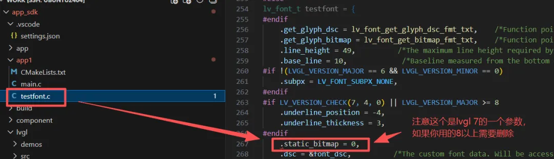 // 1. 下载生成的testfont.c// 2. 放到工程下main.c的目录// 3. 在代码中声明和使用LV_FONT_DECLARE(testfont); // extern const lv_font_t test_fontvoid create_label() { lv_obj_t *label = lv_label_create(lv_scr_act()); lv_obj_set_style_text_font(label, &testfont, LV_PART_MAIN); lv_label_set_text(label, "自定义字体");}