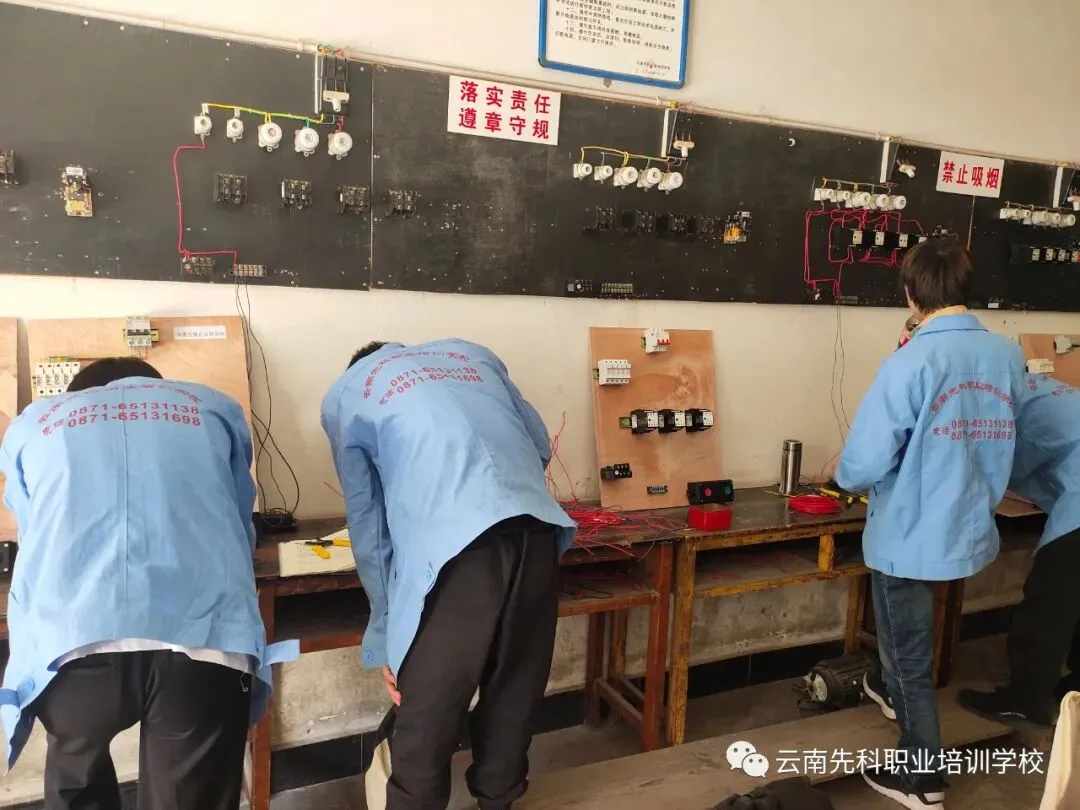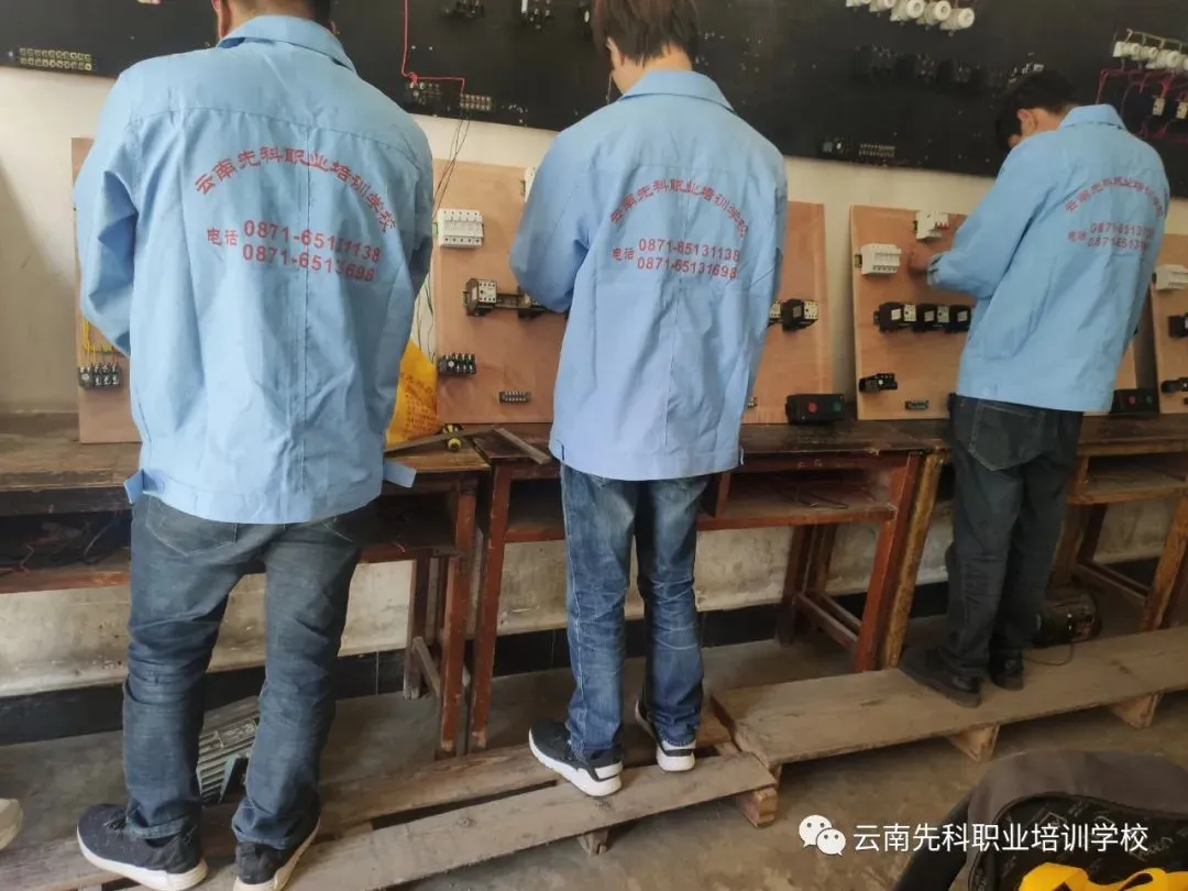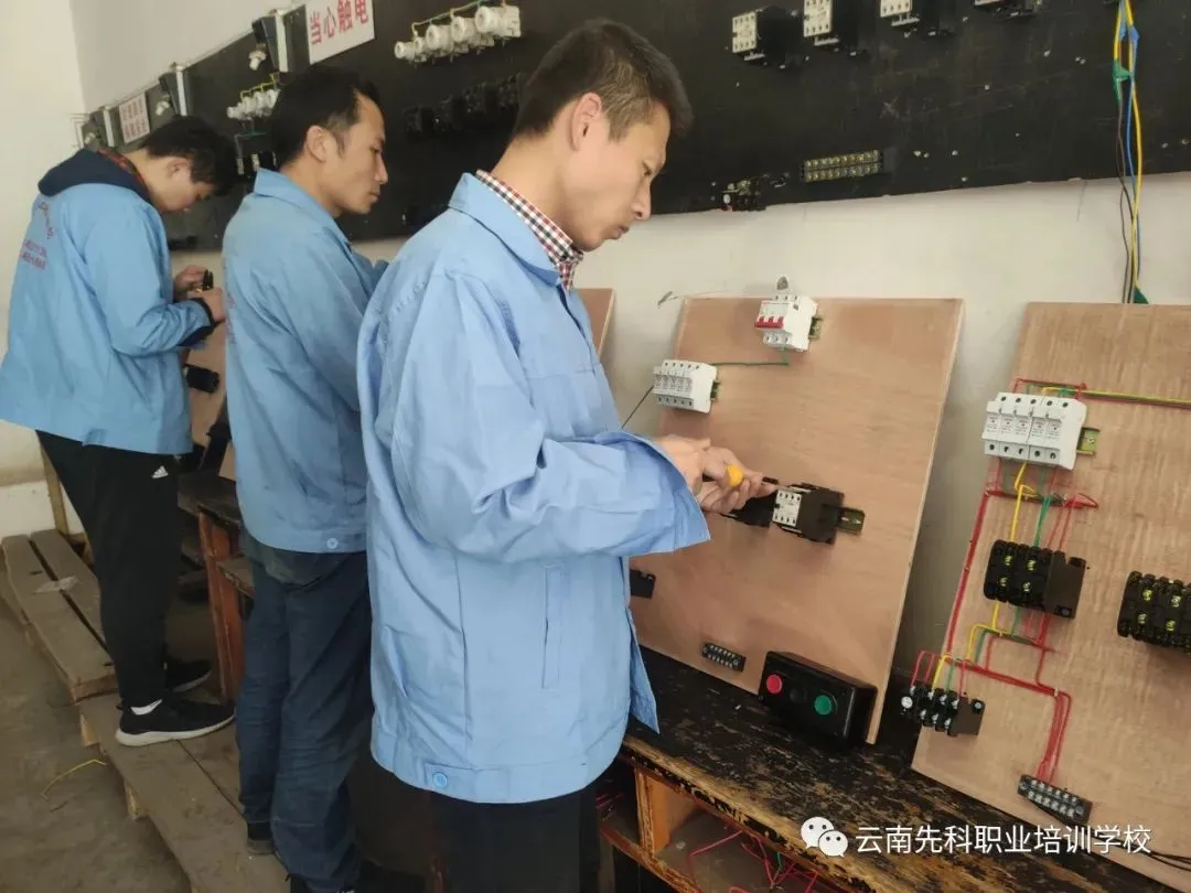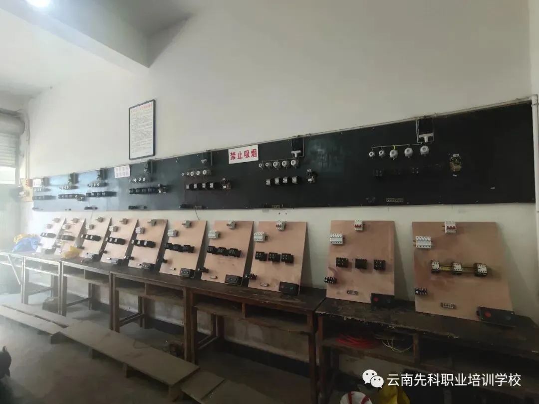 先科学校电工PLC班:主讲电工安全常识,电工基础,常用低压电器的结构、原理、故障的排除。机床控制线路的安装,配电屏一、二次线路的原理、安装、电气故障的排除,照明线路、常用灯具的安装方法、安装和故障排除,电气识图的方法、步骤。电工仪器、仪表的安装、使用。PLC组成与工作原理,输入输出布线,二进制、十进制BCD码转换。PLC选型,PLC编程,定时器,计数器,红外线接近开关的应用。三菱、欧姆龙、西门子、PLC编程软件异同编程操作。PLC基本指令及应用,交通信号灯,流水灯,电动机星三角形控制,自动往返控制,双向启动反接电源制动控制,多台电动机顺序启动,逆序停止。触摸屏(人机界面)控制画面的制作,按钮组态。变频器应用与控制;变频器的使用选型;变频器正反转控制;变频器的多速运行。