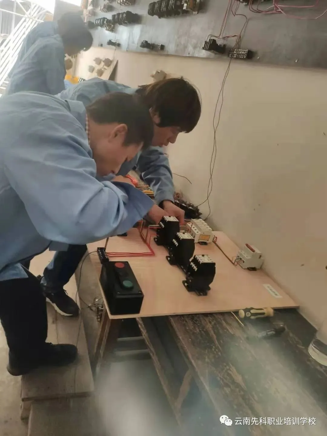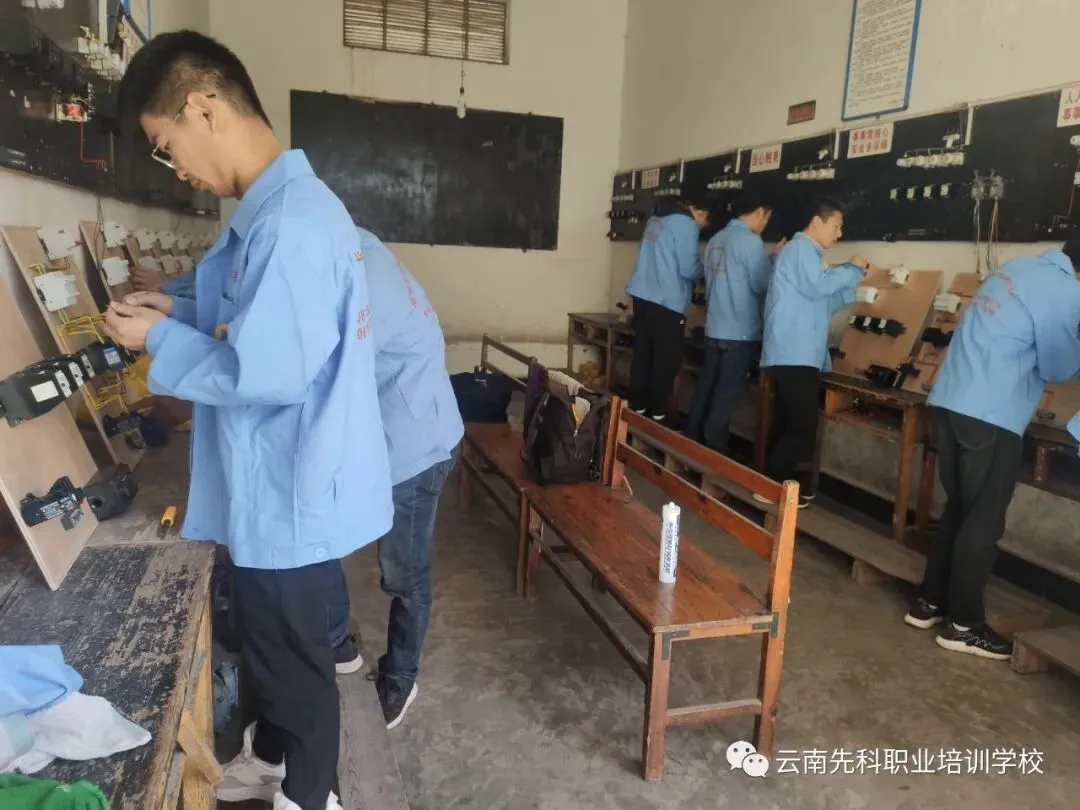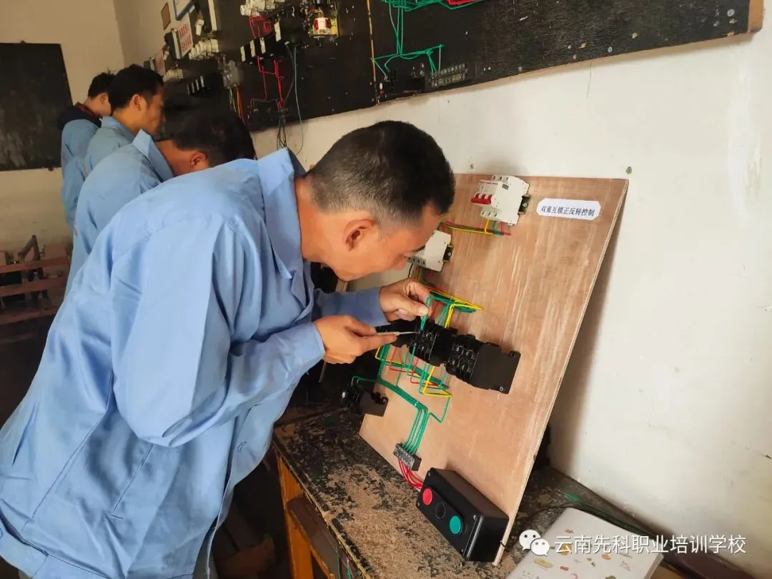 先科学校电工PLC班:主讲电工安全常识,电工基础,常用低压电器的结构、原理、故障的排除。机床控制线路的安装,配电屏一、二次线路的原理、安装、电气故障的排除,照明线路、常用灯具的安装方法、安装和故障排除,电气识图的方法、步骤。电工仪器、仪表的安装、使用。PLC组成与工作原理,输入输出布线,二进制、十进制BCD码转换。PLC选型,PLC编程,定时器,计数器,红外线接近开关的应用。三菱、欧姆龙、西门子、PLC编程软件异同编程操作。PLC基本指令及应用,交通信号灯,流水灯,电动机星三角形控制,自动往返控制,双向启动反接电源制动控制,多台电动机顺序启动,逆序停止。触摸屏(人机界面)控制画面的制作,按钮组态。变频器应用与控制;变频器的使用选型;变频器正反转控制;变频器的多速运行。