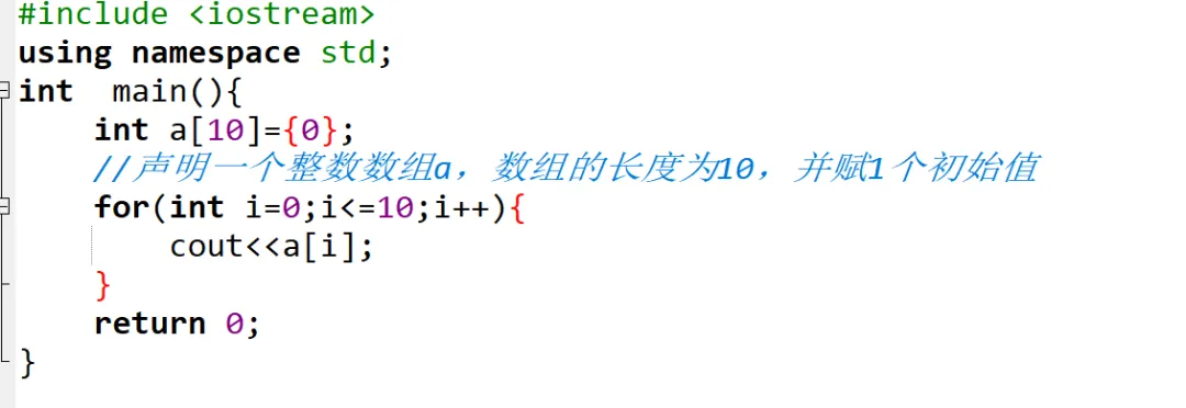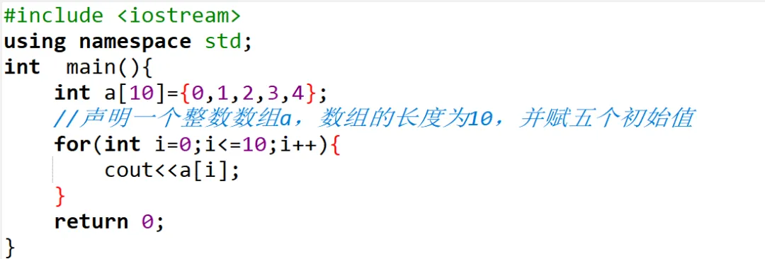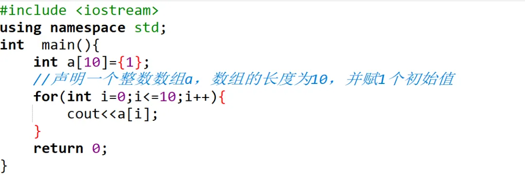 声明数组时,花括号内给定的初始值会按顺序依次赋值给对应的数组元素;