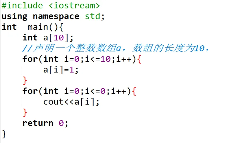 在上述示例中,我们声明了一个长度为 10 的 int 类型数组a,并为其所有元素赋初始值:第一个元素为 0,第二个为 1,第三个为 2…… 第十个为 9。