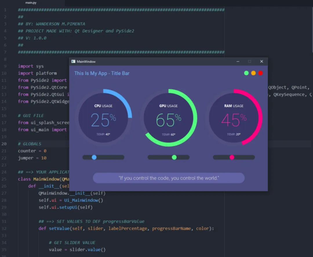项目地址:https://github.com/Wanderson-Magalhaes/Python_PySide2_Circular_ProgressBar_Modern_GUI