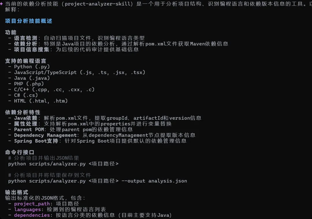 image-20260123075221769依赖分析skill主要针对java,但也为其他语言提供了位置以便后续拓展。