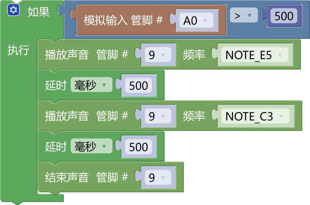 播放声音管脚 #[0]频率[NOTE_C3]