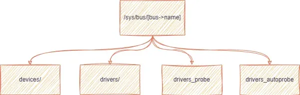 int bus_register(struct bus_type *bus){ int retval;struct subsys_private *priv; /* 双向关联 */ priv->bus = bus; bus->p = priv; /* 设置subsys的属性 */ retval = kobject_set_name(&priv->subsys.kobj, "%s", bus->name); priv->subsys.kobj.kset = bus_kset; priv->subsys.kobj.ktype = &bus_ktype; /* 设置驱动自动探测 */ priv->drivers_autoprobe = 1; retval = kset_register(&priv->subsys); /* 创建/sys/bus/[bus->name]/uevent文件 */ retval = bus_create_file(bus, &bus_attr_uevent); /* 创建/sys/bus/[bus->name]/devices和/sys/bus/[bus->name]/drivers */ priv->devices_kset = kset_create_and_add("devices", NULL, &priv->subsys.kobj); priv->drivers_kset = kset_create_and_add("drivers", NULL, &priv->subsys.kobj); /* 创建/sys/bus/platform/drivers_probe 和/sys/bus/platform/drivers_probe/drivers_autoprobe */ retval = add_probe_files(bus); /* 在/sys/bus/[bus->name]/下创建属性组相关文件 */ retval = bus_add_groups(bus, bus->bus_groups);}