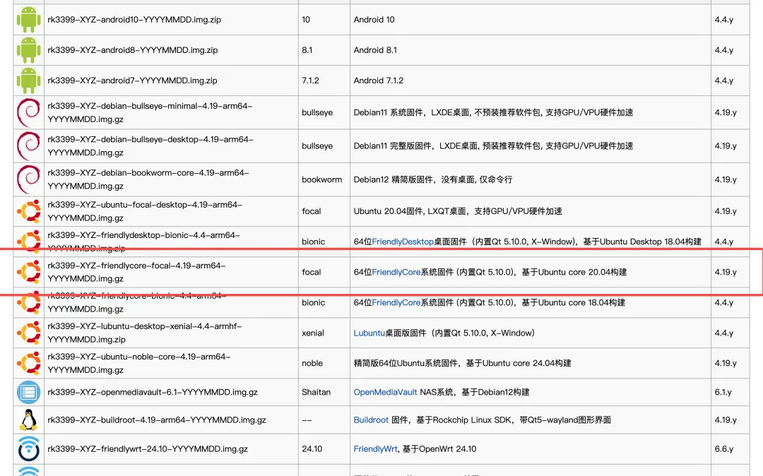 首先我们先获取一个官方提供的固件,官方提供了多种固件和镜像,可以根据需要自行选择,我选择了一个friendlycore的版本,这是友善之臂基于ubuntu20.04的内核开发的镜像。