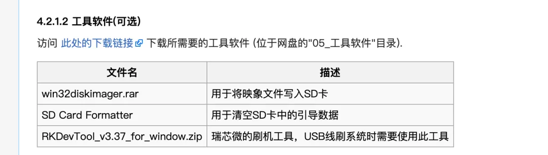 我们看到官方的镜像包中只有一个exe文件,这是Windows的烧录工具,Windows工具有图形化界面使用相对友好。友善之臂的官方资料中也没有提及Linux工具的使用,看起好像不太推荐Linux的样子。。。