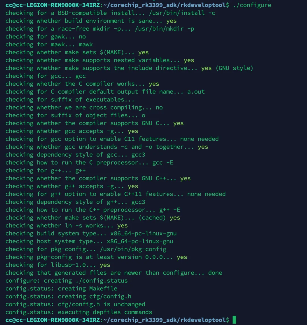 cc@cc-LEGION-REN9000K-34IRZ:~/corechip_rk3399_sdk/rkdeveloptool$ makecc@cc-LEGION-REN9000K-34IRZ:~/corechip_rk3399_sdk/rkdeveloptool$ sudo make install