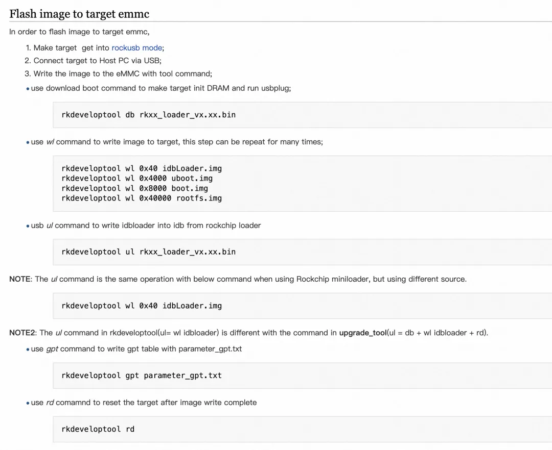 rkdeveloptool是Rockchip提供的一个与Rockusb设备进行通信的工具,通过该工具我们可以将镜像文件下载到开发板的eMMC。它被认为是upgrade_tool的一个开源版本,只有很少区别。
