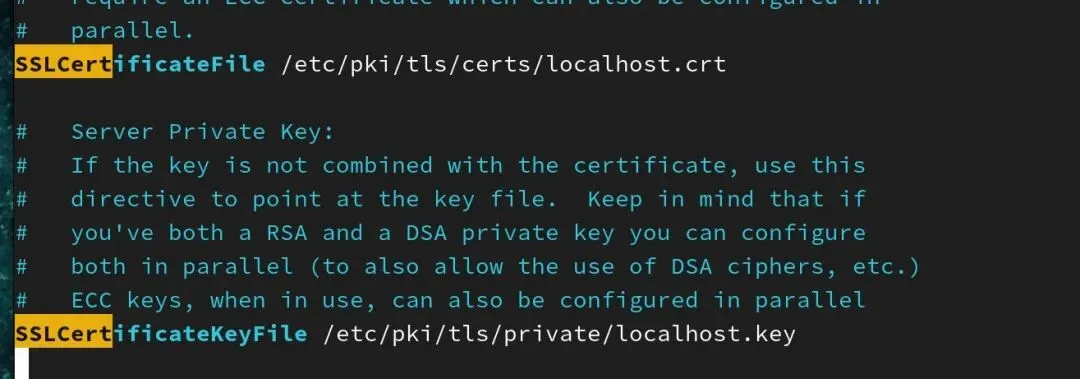 SSLCertificateKeyFile /etc/pki/tls/private/localhost.key