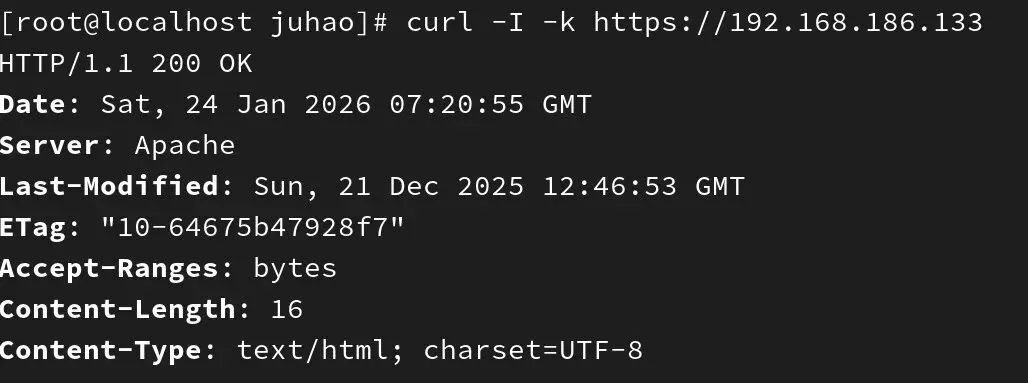 -这是因为 Apache 使用的是自签名证书,curl 等工具默认会验证证书的合法性,而自签名证书不被公共信任机构认可,所以会报这个错。