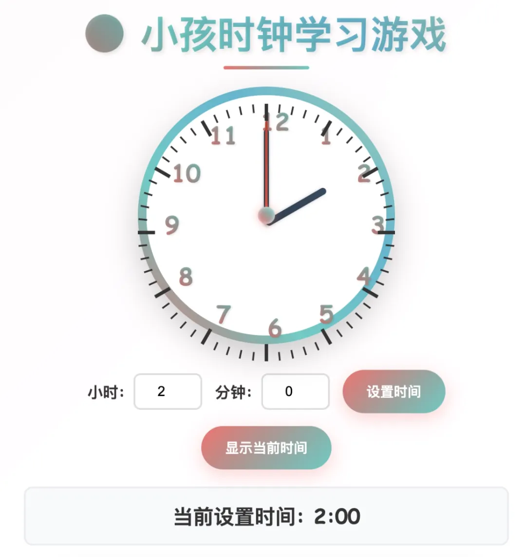 做一个互动小网页,家长省心。可拖动指针+即时反馈,孩子愿意玩!