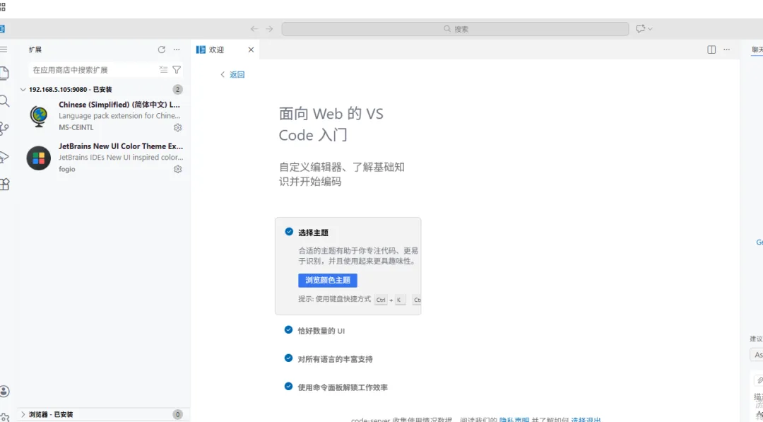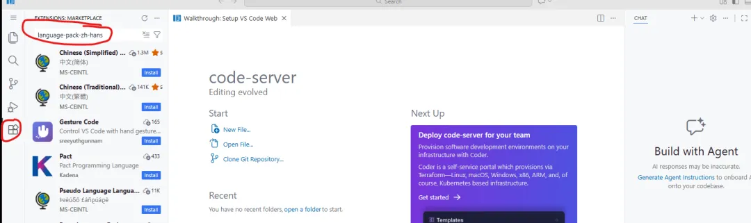 汉化插件不生效:不是安装问题,是没重启服务,执行pkill code-server后重新启动即可;