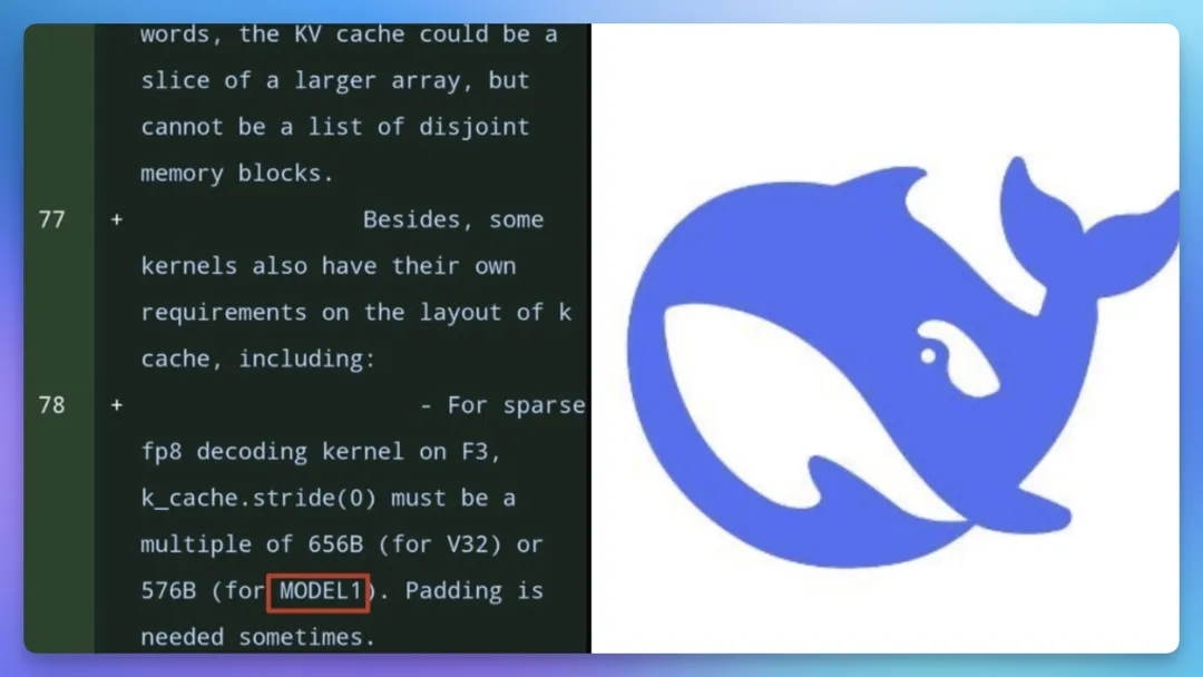 1 月 20 日,正值 DeepSeek-R1 发布一周年,开发者在 GitHub 上发现 DeepSeek FlashMLA 代码库更新中出现「MODEL1」标识符,横跨 114 个文件,共 28 处提及。代码逻辑显示 MODEL1 与现有 V3.2(内部代号 V32)处于独立分支,技术社区普遍解读为下一代旗舰 DeepSeek-V4 的内部开发代号。
