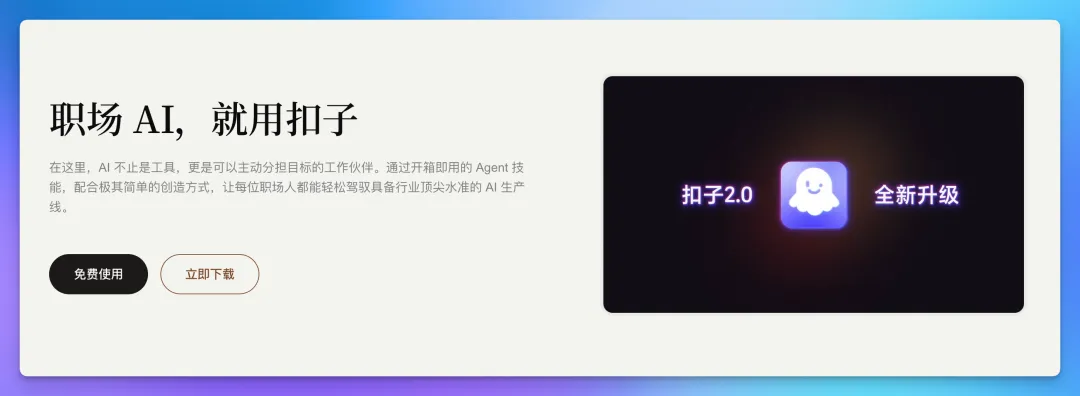 4️⃣ 🤖 字节扣子 2.0 品牌升级 :定位从开发平台转向「职场工作伙伴」,Agent 可执行长周期任务并主动汇报,新增技能商店支持一键安装专项模块。