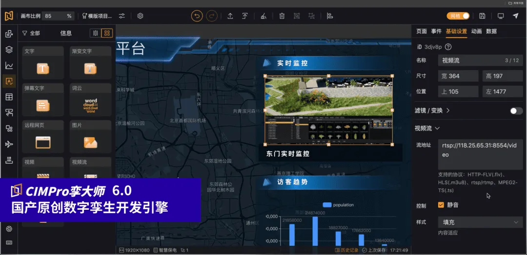 具有实时渲染和可视化开发资产功能,助力用户快速搭建可视化系统。