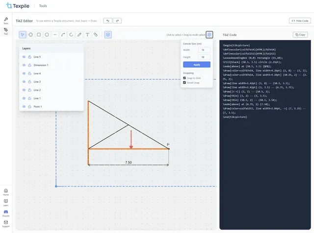 TexPile TikZ Editor 是一款专为科研人员、数学爱好者和 LaTeX 用户设计的在线可视化 TikZ 绘图辅助工具。它解决了 LaTeX 绘图中最痛苦的“盲打代码—编译—查看—再修改”的循环,实现了所见即所得的丝滑体验。