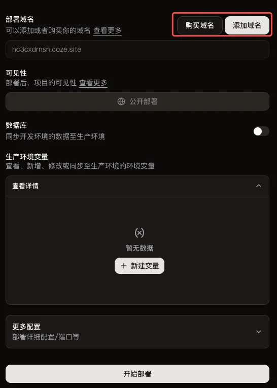 要是没有不满意的地方,点击部署,Coze就能自动把网页部署到服务器上。如果没有自己的域名,Coze还会提供一个二级域名链接,打开它就能直接使用生成的网页。