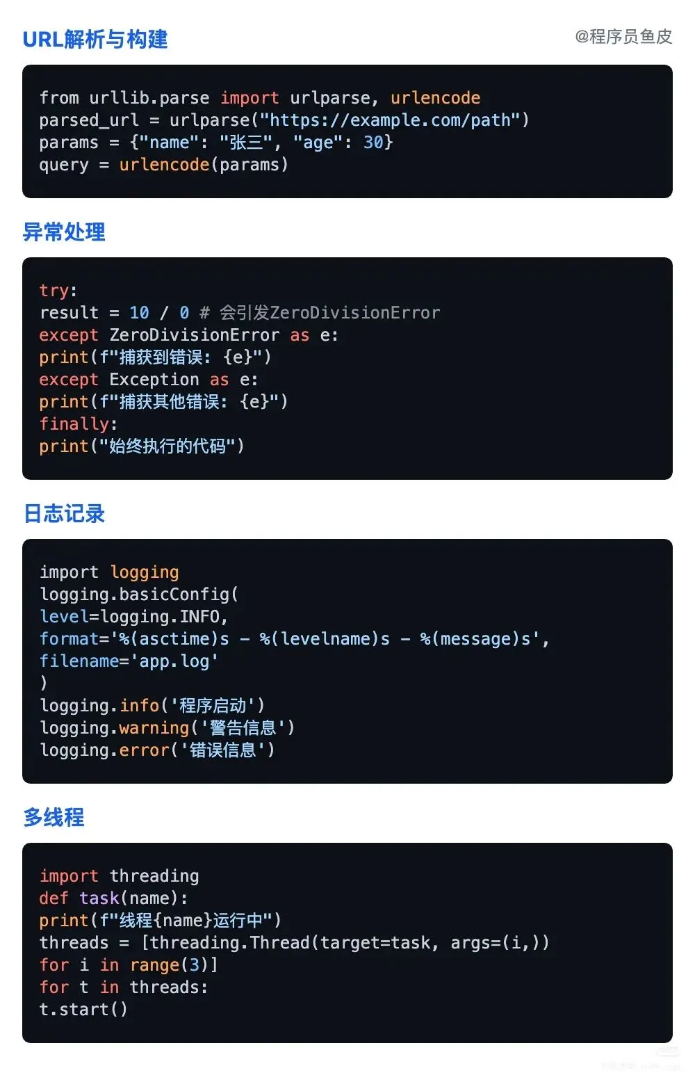 要点解析: try-except 可以针对不同的异常类型编写不同的处理逻辑, else 和 finally 是可选的,用于完善处理流程。