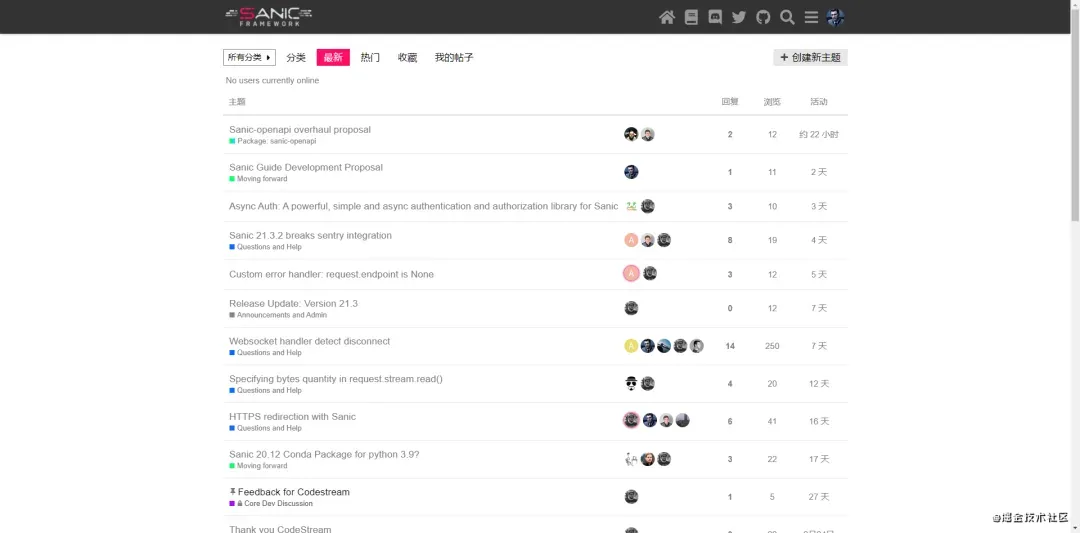 Sanic 目前常用的有 论坛、Discord、github issues、twitter、Stackoverflow
