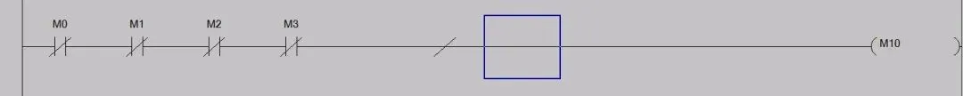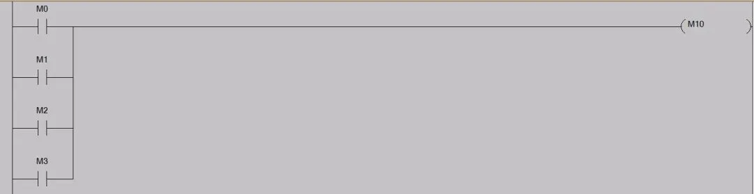 当我们想写一条很多个条件任意一条满足都能驱动线圈的时候,我们想到的笨方法一定是这样子的,功能完全实现,但是当我们有十几个或者更多时,整个画面都很难显示完一条程序,可读性就差了许多: