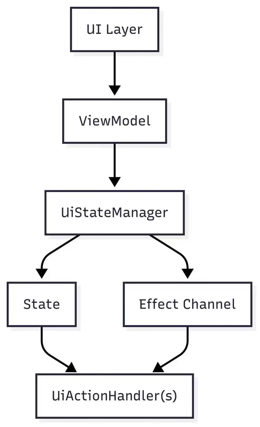 UiActionHandler之外直接修改状态。 - ❌ 不使用Channel发射效果(例如,在处理器内部调用