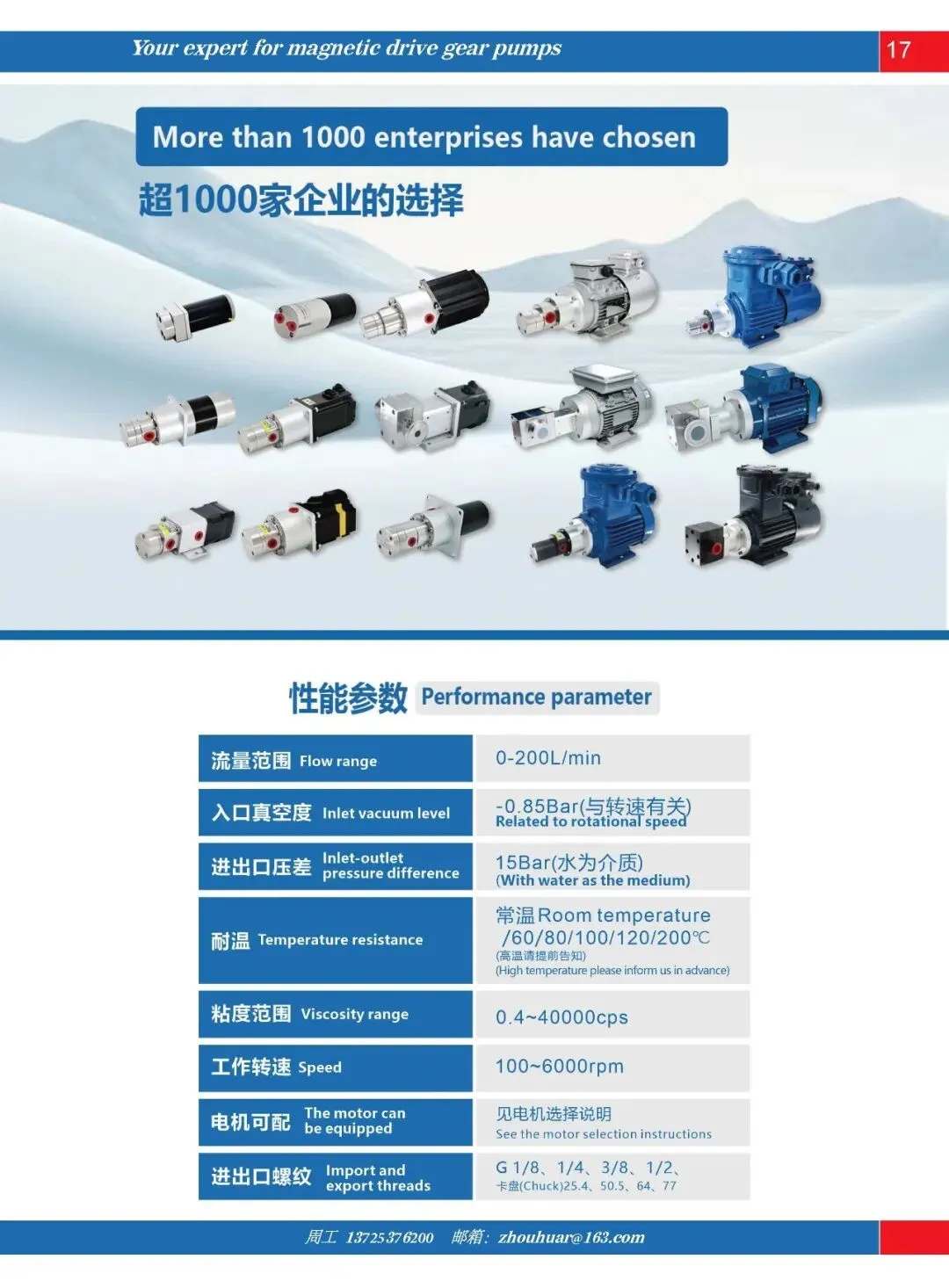 泵第一次使用,可从进料口加适量水润滑泵体齿轮,有利于提高磁力齿轮泵寿命。