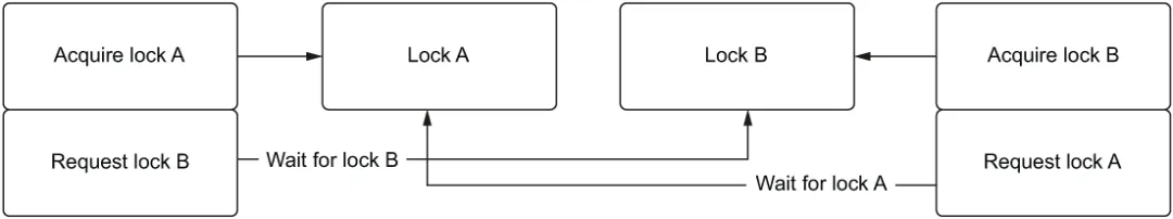 然而,在我们的情况中,有一个简单的解决方案,那就是改变两个方法中锁的获取顺序。例如,方法 A 和方法 B 都可以先获取锁 A,然后再获取锁 B。这解决了问题,因为我们永远不会以可能导致死锁的顺序获取锁。另一种选择是重构锁,使其只使用一个锁而不是两个。使用一个锁是不可能发生死锁的(排除前面提到的可重入死锁)。总的来说,当处理需要获取多个锁的情况时,请问自己:“我是否以一致的顺序获取这些锁?有没有办法重构,使其只使用一个锁?”