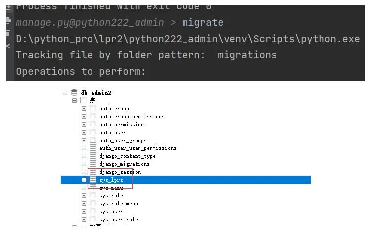 然后我们通过manage.py里,执行 makemigrations lprs 命令生成迁移文件。