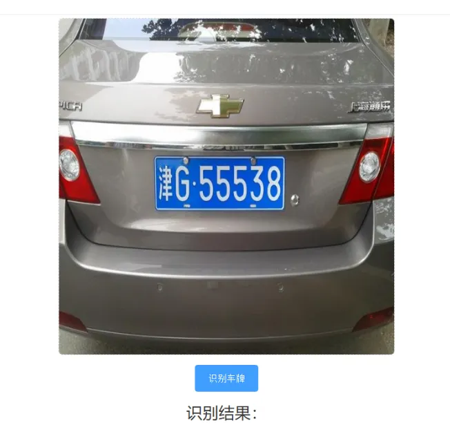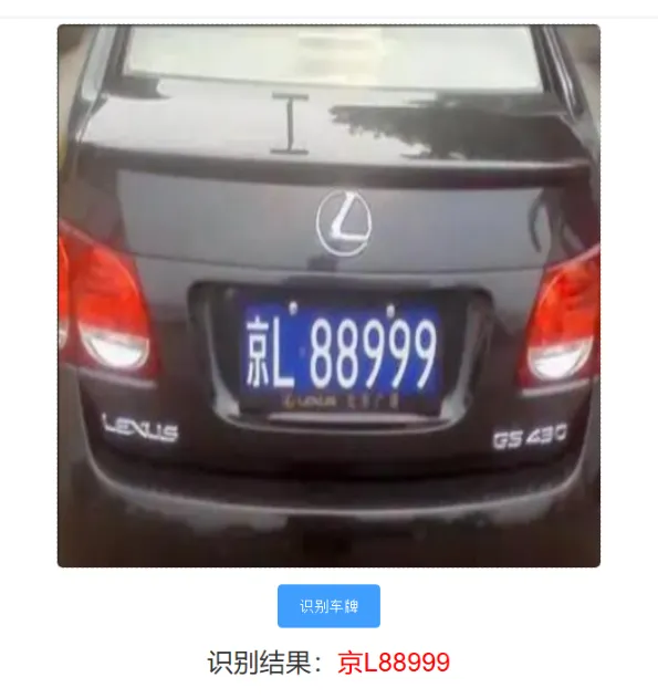 我们上传车牌图像,然后点击“识别车牌”按钮测试:
