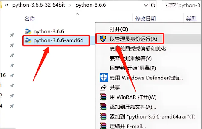 4、鼠标右击【python-3.6.6-amd64】选择【以管理员身份运行】。