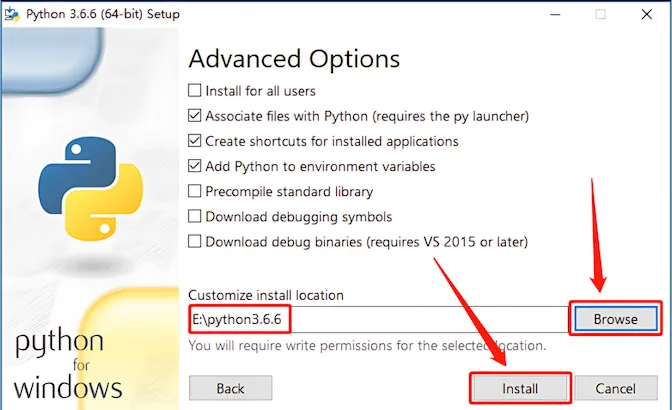 7、勾选【Install for all users】,点击【Brower】可更改软件python安装位置,设置好位置后再点击【Install】