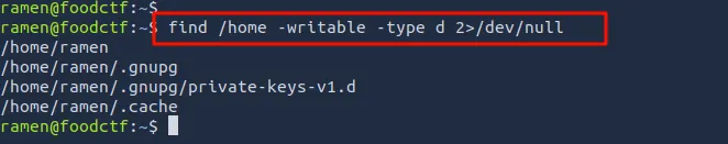 根据下图,我们已从 /home 目录中找到所有可写目录。