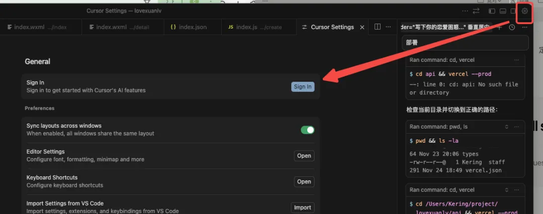 这个区域可以调整编辑器的布局,改成你习惯的显示方式。也可以通过右上角那个图标,打开设置页面,修改配置,如果不懂这次调整改变了什么,轻易不要动!!!