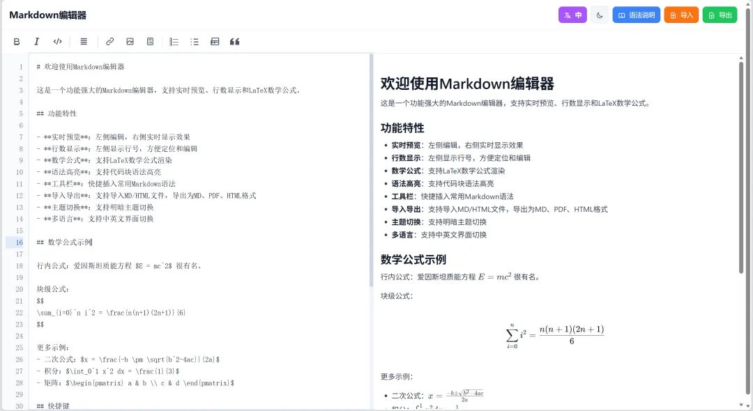 3. 支持在编辑器内直接点击按钮实现加粗、斜体、代码嵌入等markdown语法功能