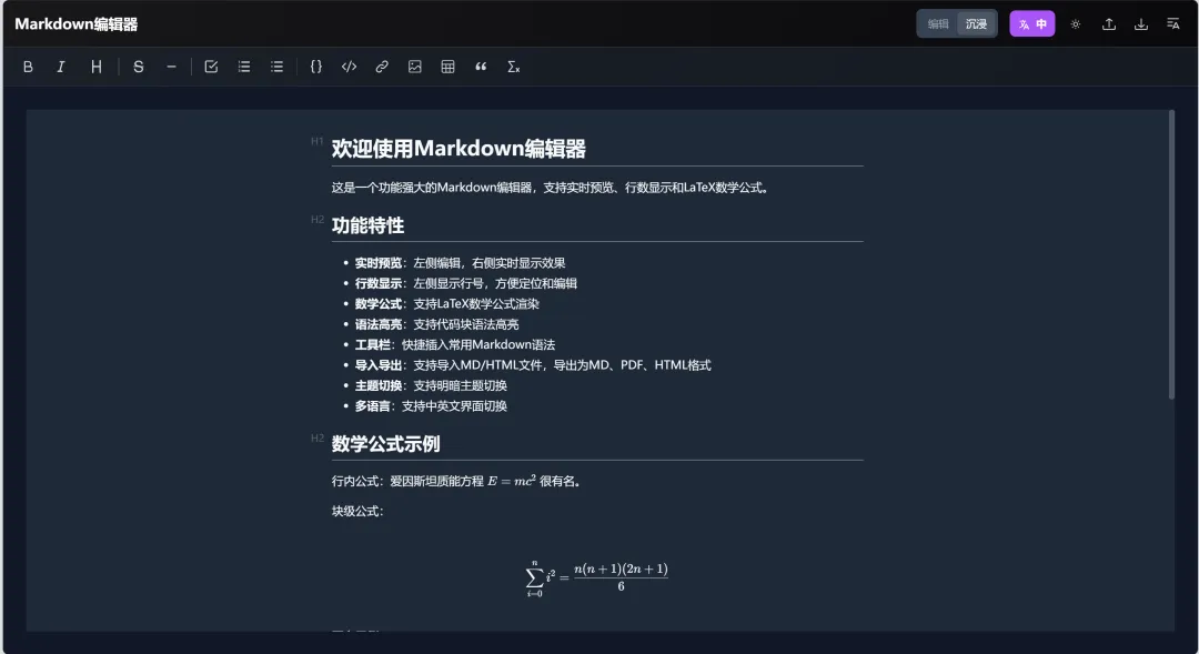 * 构建一个高效的markdown编辑器,让用户能够直接在编辑器中输入内容,并导出为md、pdf以及word等格式的文档。
