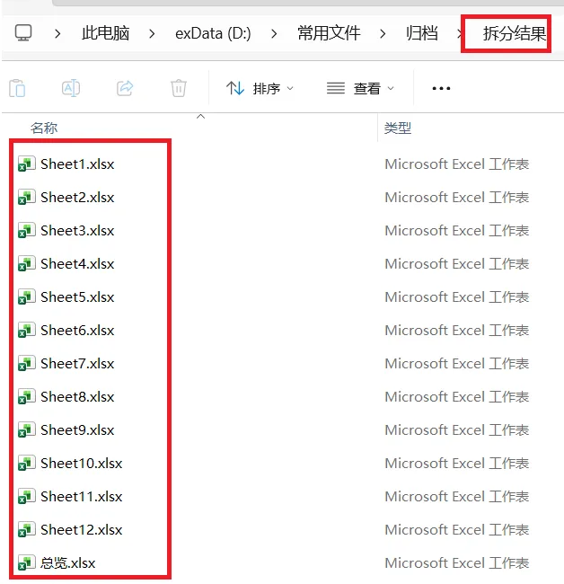 拆分后的效果展示:在待拆分的Excel文档所在路径下自动创建一个“拆分结果”文件夹,所有拆分后的Excel都保存在这里,按照其对应的工作表名称命名以下代码是进行优化后的,去掉了所有不必要的部分,现在核心功能只需要短短十几行代码就能实现