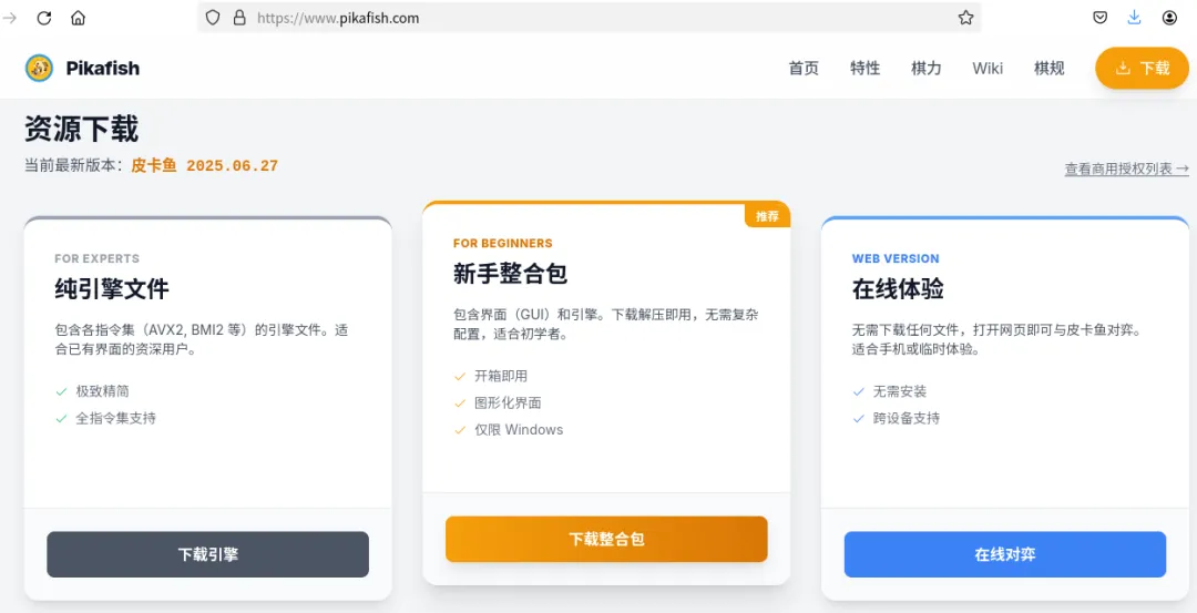 有三种程序包,选择最左侧的 “纯引擎文件” 进行下载。