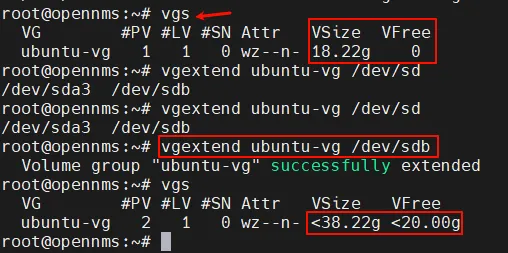 # 基本用法vgextend vg_name /dev/sdb# 实际示例vgextend ubuntu-vg /dev/sdb# 一次添加多个物理卷vgextend vg_name /dev/sdb /dev/sdc