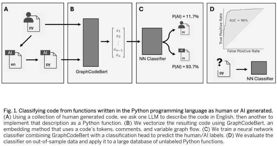 研究人员构建了一个包含人类纯手写代码和AI生成代码的对照数据集。