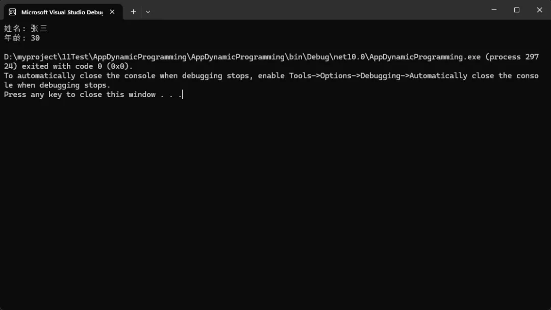 // 使用ExpandoObject的优雅方式publicclassDynamicApproach{publicvoidProcessJson(string json) {dynamic obj = JsonSerializer.Deserialize<ExpandoObject>(json);// 直接访问属性,如同静态类型一样自然 Console.WriteLine($"姓名: {obj.name}"); Console.WriteLine($"年龄: {obj.age}");// 动态添加新属性 obj.processTime = DateTime.Now; obj.status = "已处理"; }}