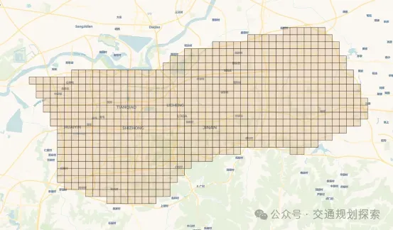 将济南中心城区划分为723个规则栅格,每个栅格代表一个500米×500米的地理单元,确保分析的空间代表性和全面性。