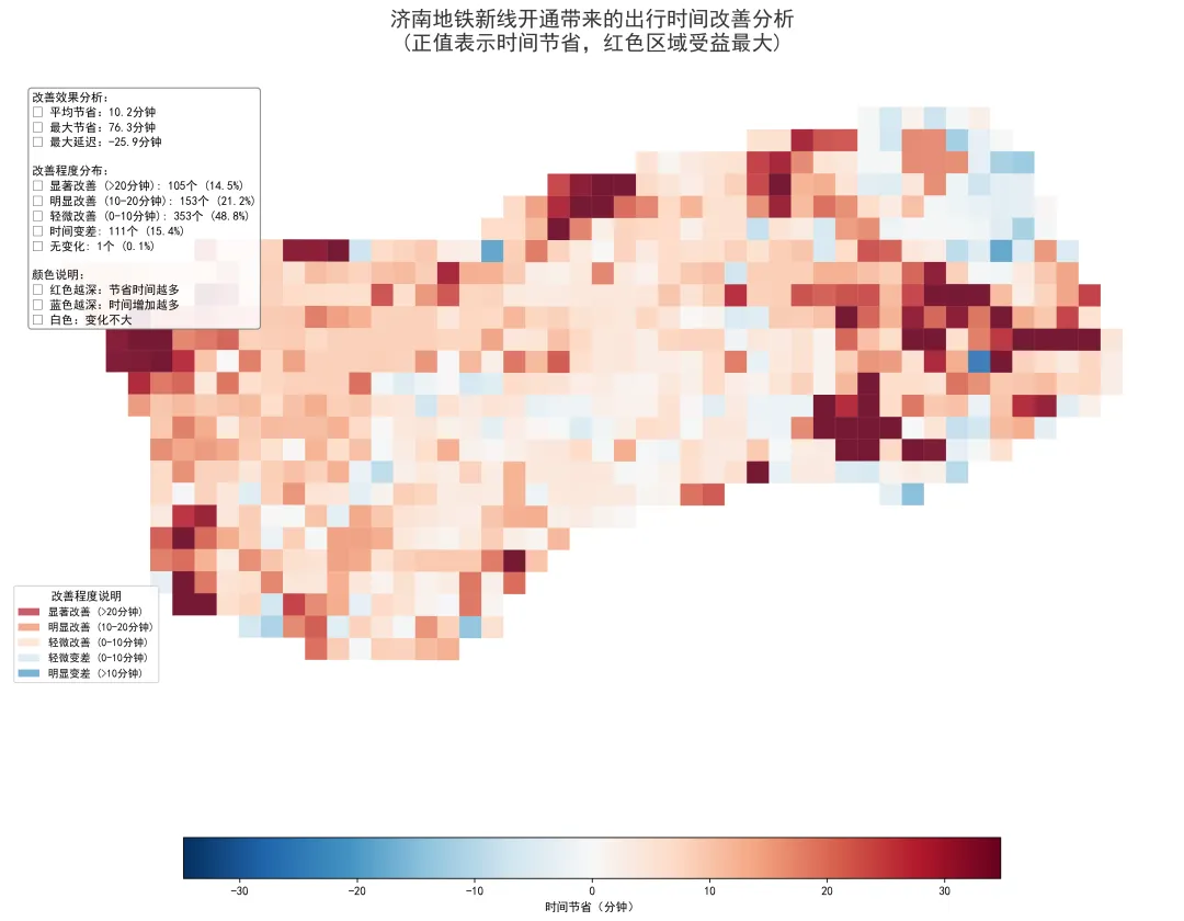 一条地铁线,改变的不仅是轨道长度,更是城市的时空格局和市民的生活半径。本次数据分析显示,济南地铁新线为奥体中心的可达性带来了显著提升,特别是为边缘区域居民带来了实质性便利。