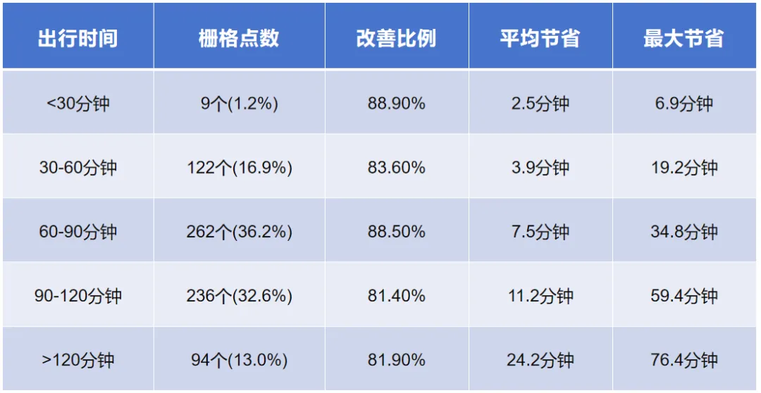 B级:明显改善 (10-20分钟) → 153个 (21.2%),平均节省14.4分钟