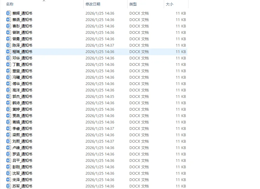 由此可见若操作成百上千个word期末通知书的话整个操作流程繁琐且耗时,高频次的鼠标点击和键盘输入使操作者手指疲劳,堪称"键盘敲冒烟"式的体力劳动,加上人工疲劳操作极易导致遗漏文件夹。于是乎这时候,按以往的 “解题套路”,Python 的专属 BGM 该响起来了 ——go~ go~ go~,救苦救难的大救星这不就来了!!