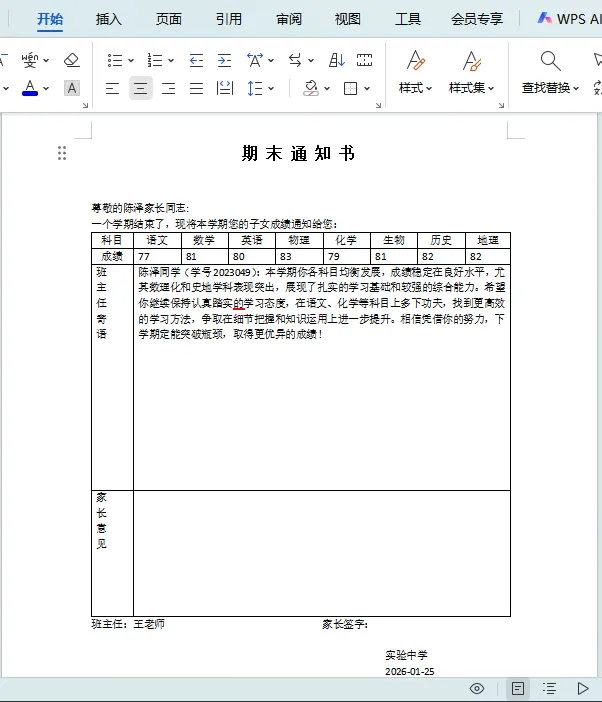 - 成绩对应错误Excel 和 Word 切换频繁,易出现 “张冠李戴”—— 比如把学生 A 的数学成绩粘贴到学生 B 的通知书中,或漏填某科成绩(如漏填生物、地理),尤其学生人数多时,核对成本极高。