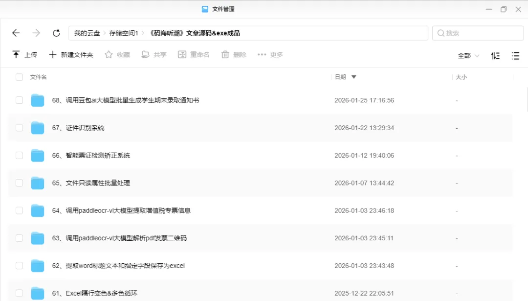 另外,《码海听潮》公众号所有文章码和exe程序已打包好上传绿联nas私有云,有需要的大佬扫一扫上面博主的个人微信二维码,需要的大佬需支付9.9元永久拥有公众号资源(写原创干货费时费力,属实不易),邀请您进入社区群获取下载链接!!,群内提供python办公自动化交流问题,解决问题,且码海听潮微信公众号文章发布会第一时间会更新到群里,非诚勿扰哈!