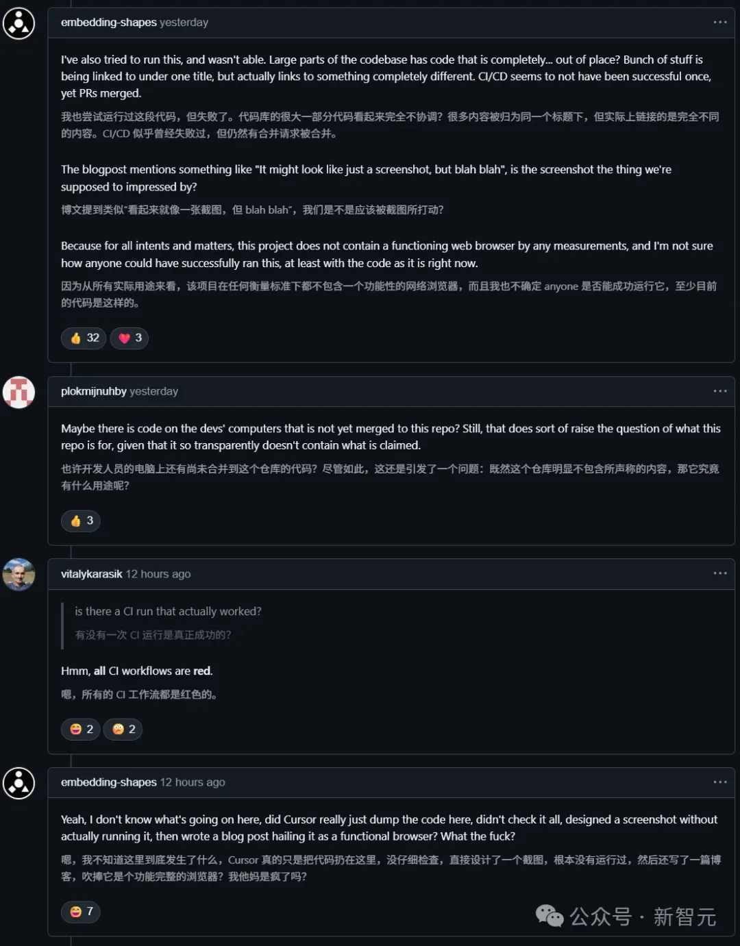 他们拥有深厚的技术底蕴,能够一眼揪出AI生成的逻辑漏洞,能够清理像这次浏览器项目中出现的「电子泔水」。