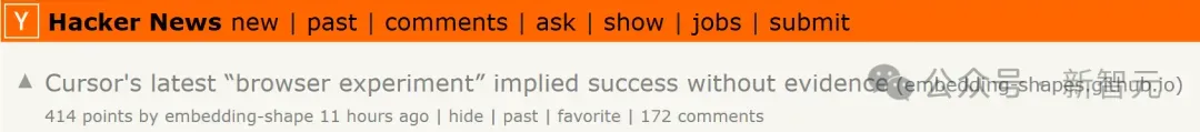 在这种形势下,一篇「编码智能体运行一周,自己写出一个浏览器」的叙事,是多么顺应潮流,多么吸引眼球啊。